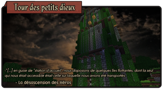 Vulgairement la station d'échange reliant la terre au ciel, la Tour des petits dieux prend pied sur une île celeste elle même cousine de deux autre îles inaccessibles (... le sont elles vraiment?). C'est en ce lieu que se trouve le Portail menant à Leopowly. L'endroit est en fait une île celeste se trouvant en dessous de la couche de nuage épaisse séparant Soria d'Ossyria. Le lieu prend alors le rôle de parfaite transition. Pour y descendre, il suffit d'utiliser la fontaine de source inépuisable produit à cet effet.